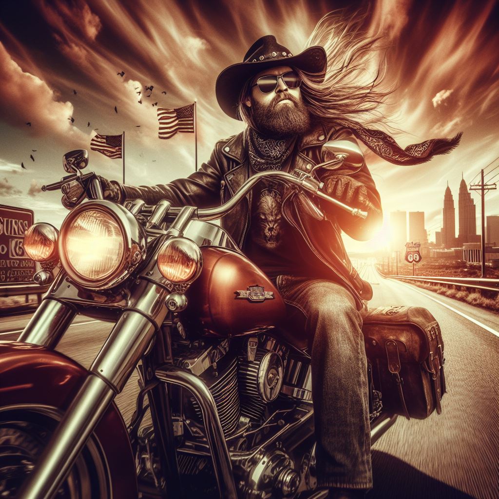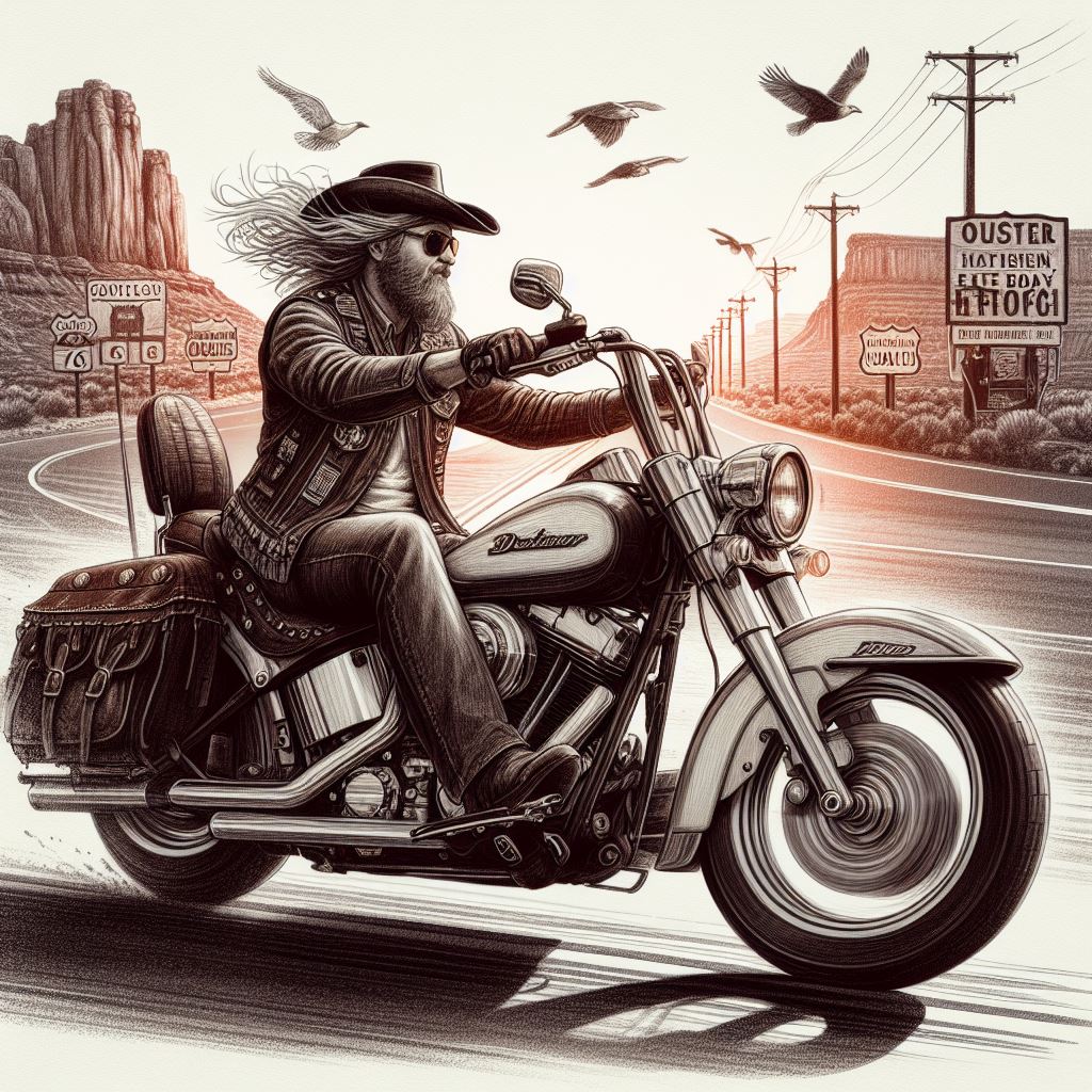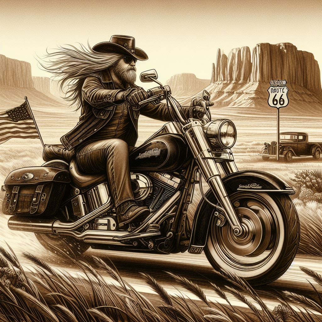 Cheveux au vent sur notre belle moto.